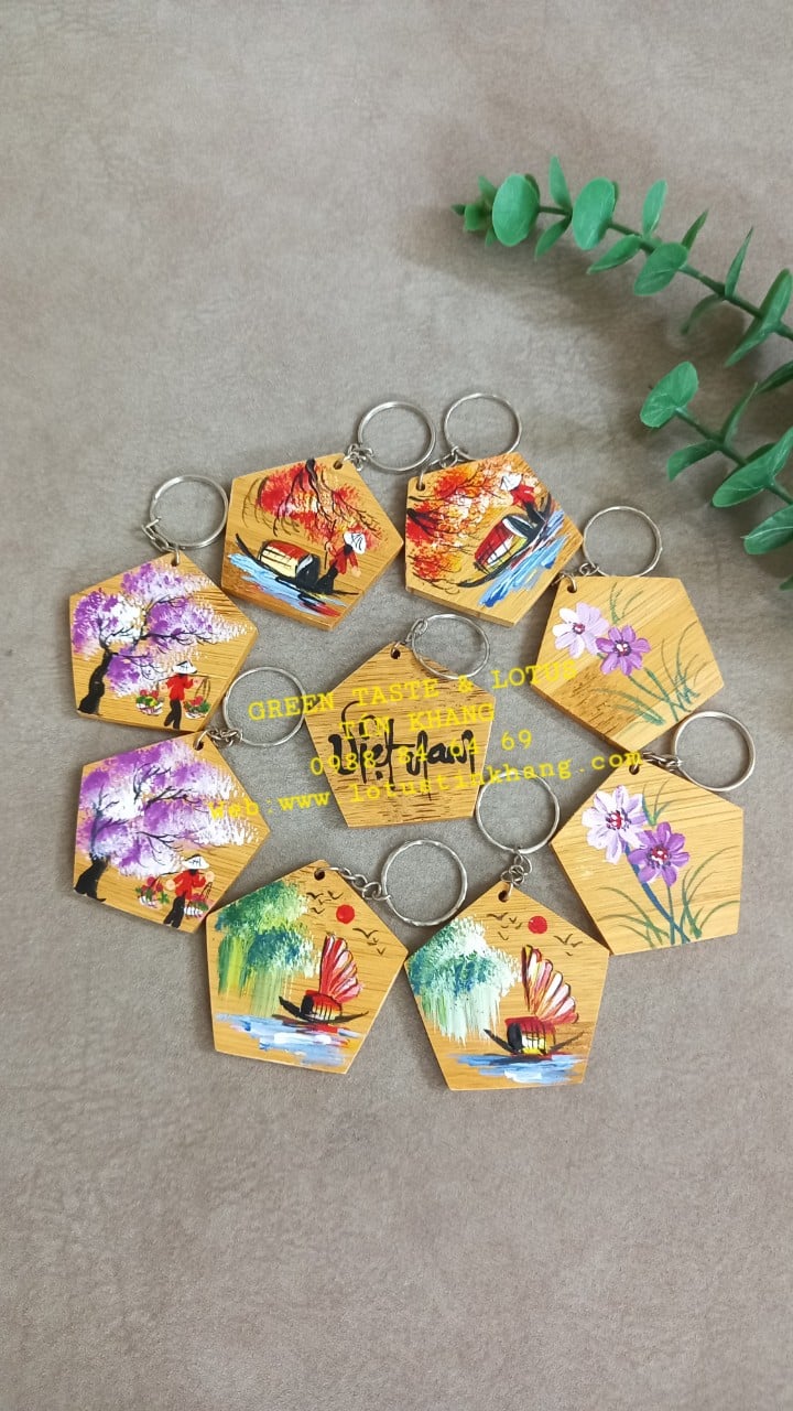 #Móc Khóa Đẹp bằng Gỗ Vẽ Thủ Công Mỹ Nghệ-Phụ Kiện Decor, Quà Lưu Niệm Việt Nam Handmade Cao Cấp, Chuẩn Đẹp .